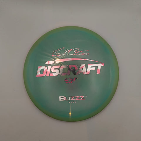 The Mini Z Buzzz is a miniature version of the beloved Buzzz mid-range, designed for both practical use as a marker and for fun mini disc golf games. Crafted from durable Z plastic, this mini disc offers a vibrant, translucent appearance that stands out. It maintains the reliable flight characteristics of its full-sized counterpart, making it a great addition to any disc golf bag. Perfect for collectors and players alike, the Mini Z Buzzz brings a touch of whimsy and functionality to your disc golf experience.