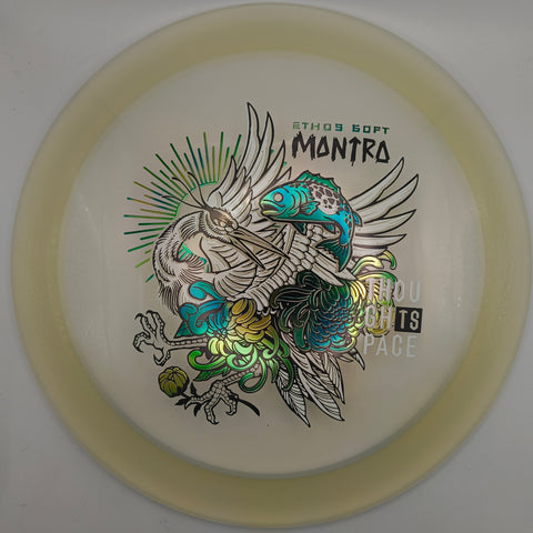 Ethos Soft Mantra — Experience the perfect blend of grip, control, and glide with the Ethos Soft Mantra. Crafted in Ethos’ soft plastic, this disc delivers a comfortable feel in the hand without sacrificing performance, making it ideal for precise throws and smooth approaches. With predictable flights and gentle fade, the Soft Mantra works for a variety of players — from beginner putters to seasoned pros looking for reliable control. Finished with Ethos’ clean, modern artwork, it’s as striking in your bag as it is on the line. Soft feel. Reliable flight. Confident throws.