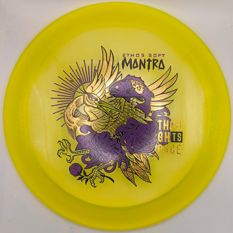 Thought Space Athletics says this about the mold: A New Feel for a Fan Favorite. The Ethos Soft Mantra takes one of our most loved understable fairway drivers and pairs it with a softer, more flexible blend built for controlled grip and effortless shaping. Whether you’re learning hyzer flips, carving turnovers, or seeking a fairway driver that works with you instead of against you, the Soft Mantra delivers intuitive flight with tons of glide. This run features our Ethos Soft plastic, offering enhanced hold, a comfortable hand feel, and a bit more flexibility compared to standard blends, making it perfect for new players, developing arms, or seasoned throwers looking for finesse shots in the woods. Each disc showcases our signature Mantra artwork, reimagined in vibrant multi-color foil combos that bring movement and energy to every colorway.