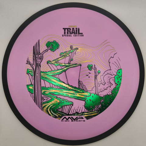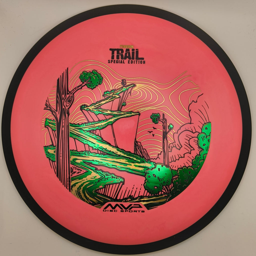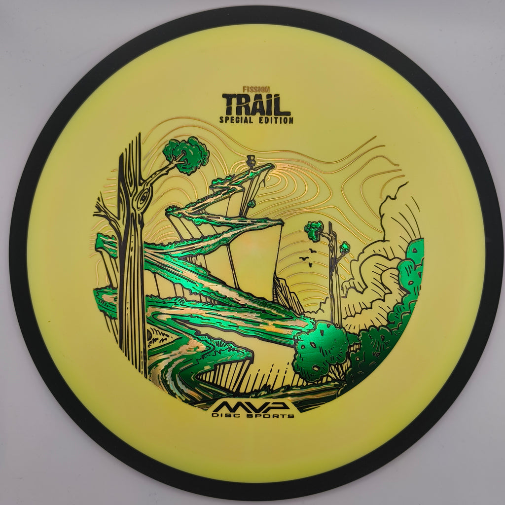 MVP says this about the mold: “Those of you who were able to join us out at the PDGA Champions Cup got a sneak peek at a disc we’re incredibly excited to officially debut – the Special Edition Fission Trail! A-dorn-ed with an incredible triple-foil illustration by the legendary John Dorn, showing that the path to the top isn’t always straightforward, discs like the Fission Trail can surely make it easier. The unique Fission microbubble technology emphasizes the best aspects of the Trail – a stable to understable driver that excels in hyzer-flips, turnovers, and straight shots with a forward pushing fade. A perfect driver for players of all skill levels, begin your journey with the Special Edition Fission Trail!”