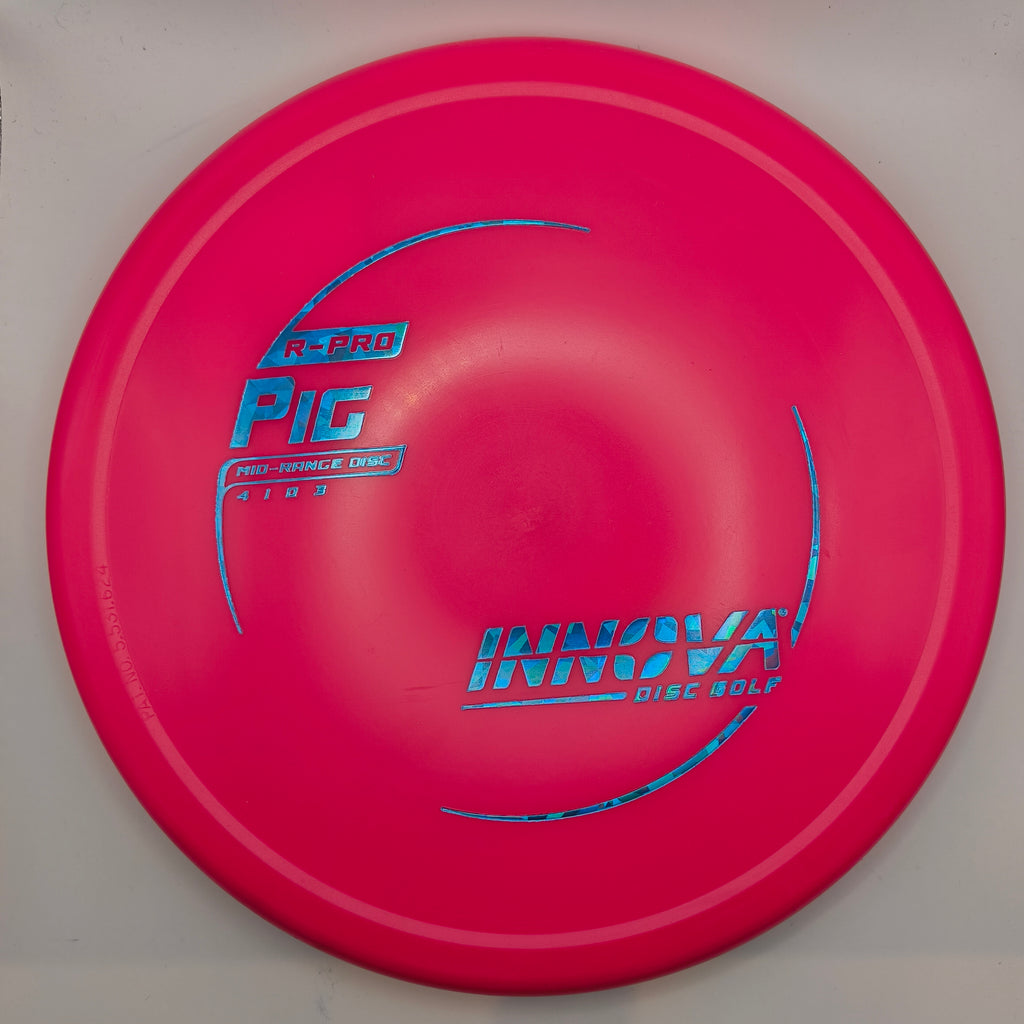 The Pig is an overstable Mid-Range disc. It is great for hyzer putting, sidearm approaches and backhand spikes. The Pig holds the line well, even in extreme wind conditions. The Pig features a Thumtrac® Rim for sure grips on sidearm throws and putts. It performs equally well for backhand or sidearm throws.