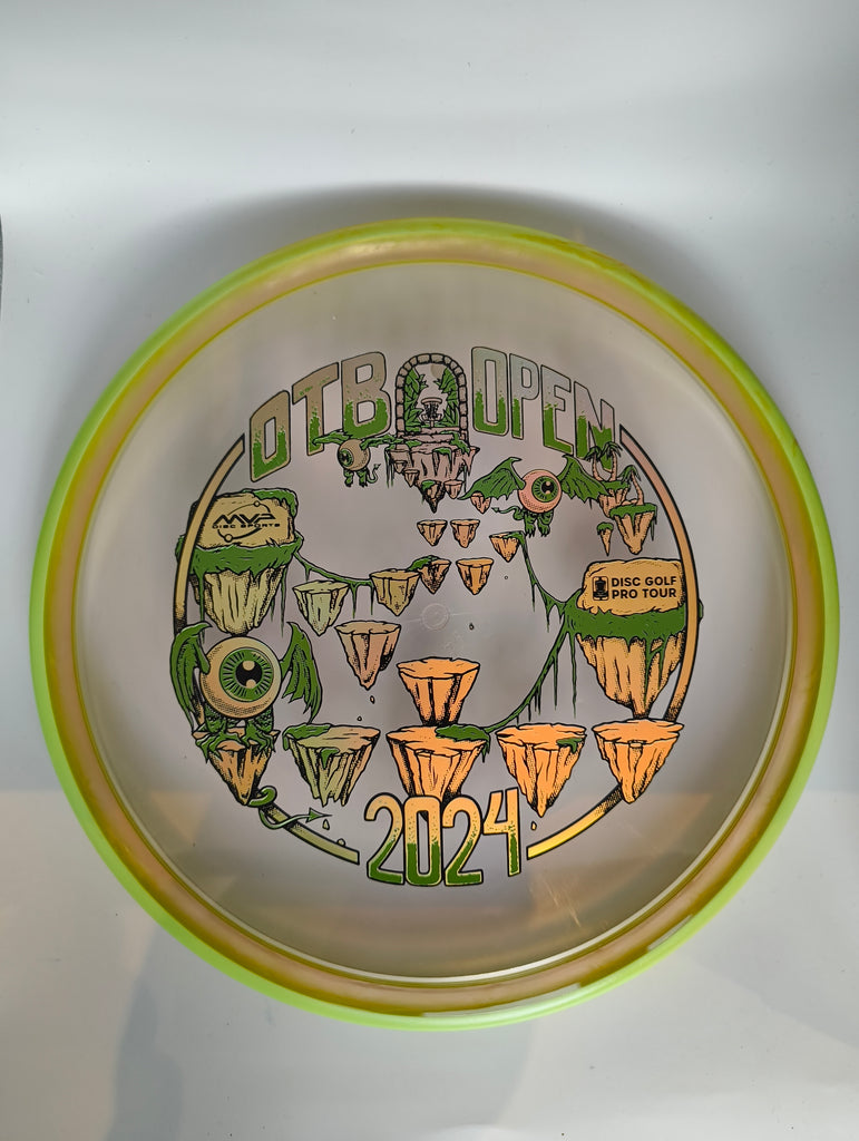 Prepare to achieve your new high score as Green C Studio shows us the way on the Proton Soft Tempo! Featuring a stamp sure to get you into your rhythm, let the calm cadence guide your hand for the perfect shot. With flight numbers of 4 | 4 | 0 | 2.5, the Tempo was designed as a low-profile approach putter that, while not overwhelmingly overstable, can handle torque for forehand or backhand drives and approaches. Get into the flow that works for you with the 2024 OTB Open exclusive Proton Soft Tempo – the first official release of the disc that took us all by storm in 2023’s Circuit Challenge!’